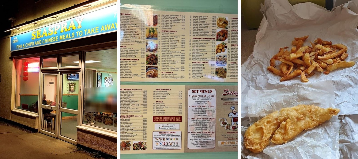 Savor authentic Chinese flavors at Seaspray Chinese Takeaway in Lower Quinton. Enjoy favorites like fish and chips, chicken curry, and prawn dishes, all at great prices. Convenient parking available! Call us at +44 1789 720551 for takeout today!